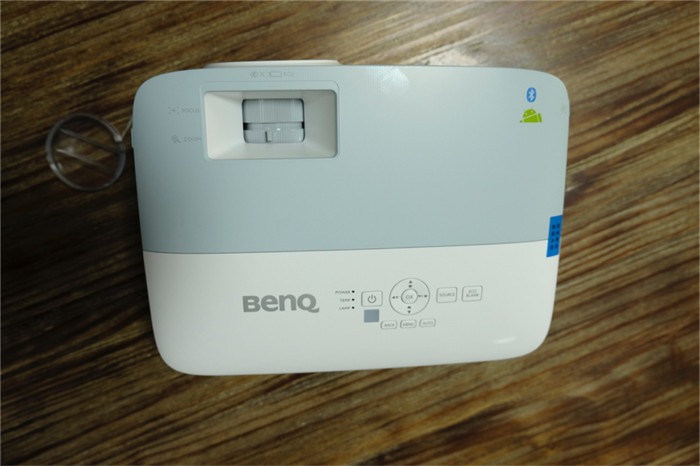 机器不大,放在桌面上很OK。做工仍然是传统的BenQ风格,但右上角的蓝牙和安卓标识,暗示着有别于传统投影的元素。
