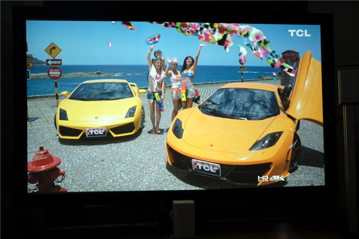 可以看到,参数中亮度指标比较给力,亮度达到2200流明,实际观感确实不错。屏摄中的幕布是Visione 130寸编织透声幕,增益为1.0。