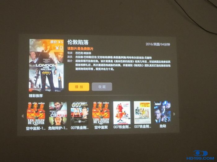 我是用它直接投办公室的白墙,拉上窗帘,亮度和画质我还是能够接受的。系统自带的App片源方面也是比较丰富的。