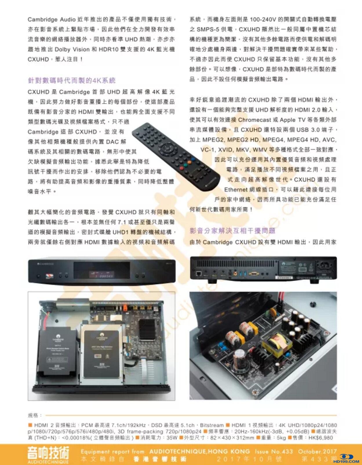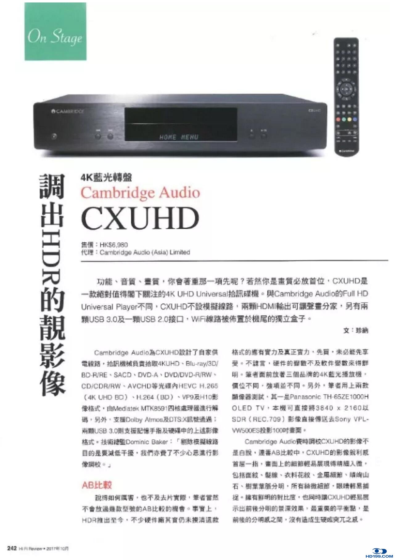 2、HIFI REVIEW评测:调出HDR的靓影像 -- 4K蓝光转盘 Cambridge Audio CXUHD