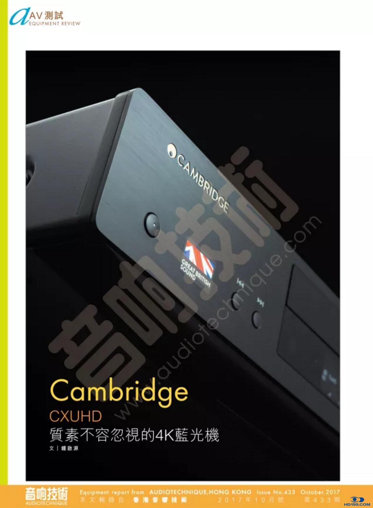 英国剑桥CXUHD首台超高清4K蓝光机,将在10月中正式推出。在正式进入市场前,已经有不少资深媒体和烧友体验过英国剑桥CXUHD的整体素质。以下是摘自香港资深媒体和烧友们对CXUHD的评价,其中包括:SPILL、HIFI REVIEW、EZONE 以及 音响技术...英国剑桥CXUHD怎么样?看看便知!