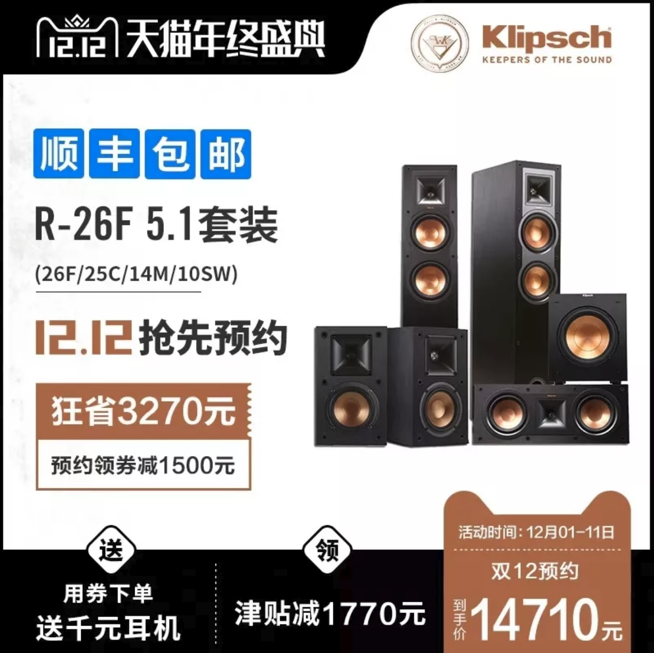 本次活动除了双12统一的满300减30之外,我们的产品还分别设置了不同金额的优惠券,100~1500元不等。即日起至12月11日晚23:59,进入【Klipsch杰士旗舰店】领取相应产品优惠券;双12当天下单即可享受下述优惠。(优惠劵数量有限,先到先得)