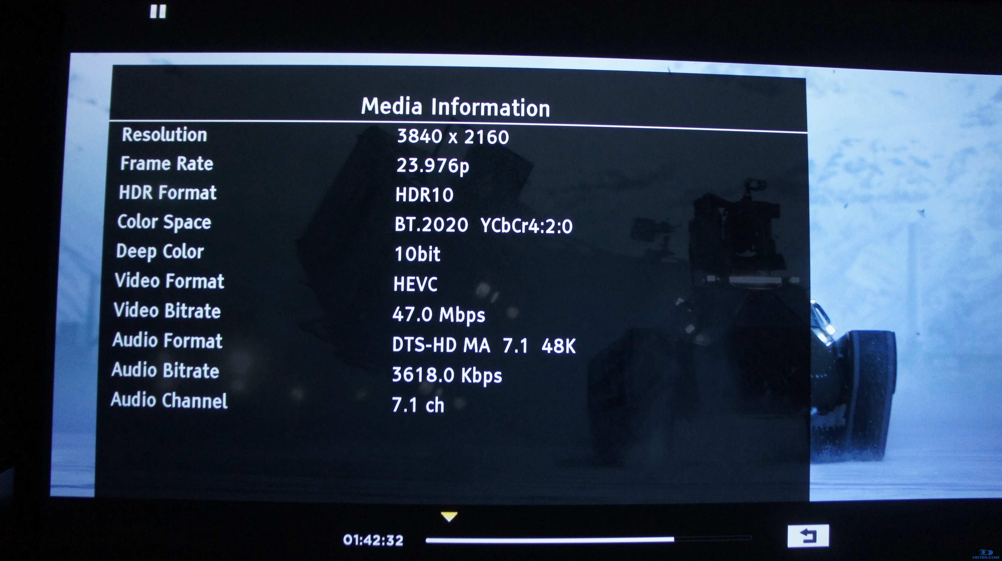 《速度与激情8》这张4K UHD碟支持HDR10与杜比视界HDR,正好补充一下,上位试用烧友播放该碟片导致死机问题已找到:原因是该碟数据面非常脏,解决方法很简单:用CD刷刷干净后反复测试播放ok,整个5天测试期间各种格式播放片源都顺利正常,无一次卡机死机现象,兼容性还算不错。
