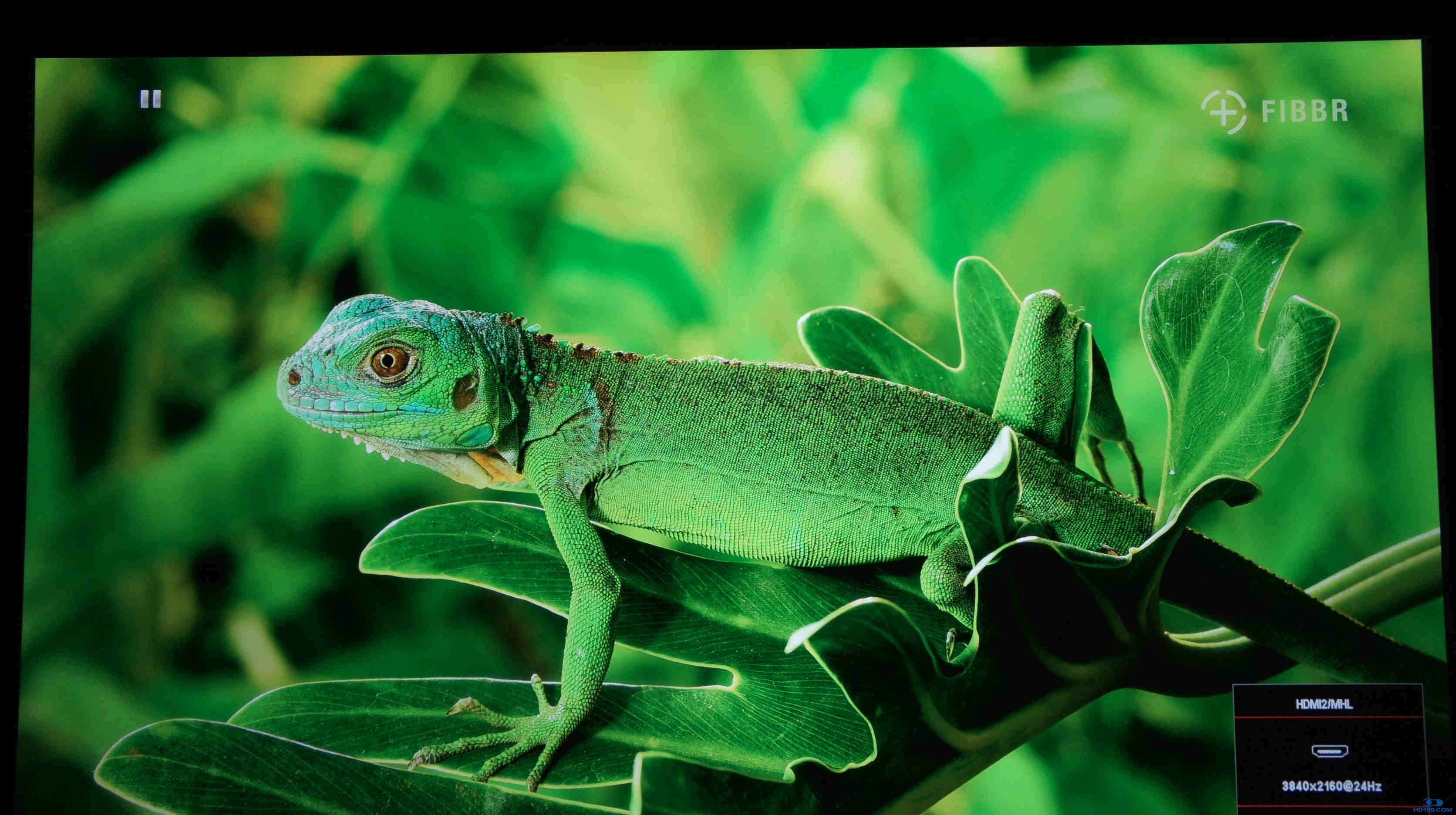 收到评测器材前就下载了FIBBR厂家提供的4K测试视频FIBBR-2017 Demo.mp4(937M)看了两遍,演示视频与实际4K影片画面是不一样的:画面对比度强烈,颜色鲜艳,下面几组对比画面为同一帧画面暂停拍摄,上图为20米King黑金光纤HDMI线、下图为菲伯尔2.0版10米光纤HDMI。