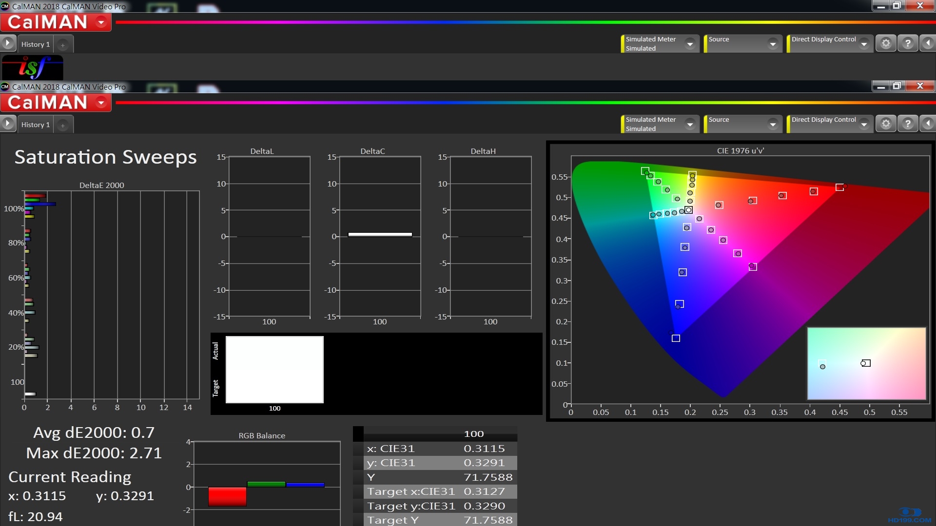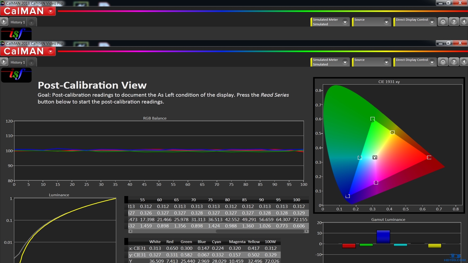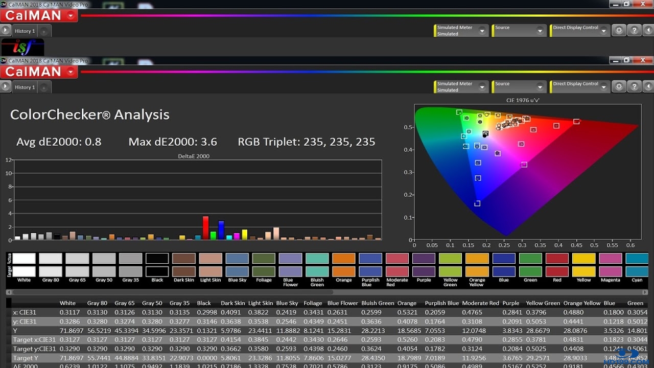 这张是由厂方提供的校正报告,证实这部机器出厂时经测量后证实在D-Cinema mode中达 100% Rec 709而在User mode中达95% DCI-P3,以这个价位可达到DCI-P3可以说很了不起了。