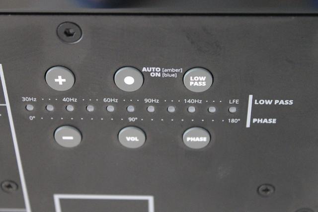 当然数字化的可不仅仅是功率放大部分,SB3000把超低音信号的衰减、相位、EQ等DSP处理也全部实现了数字化,可以通过智能手机遥控操作,而低音炮的屁股上非常简洁,控制部分就只有几个按钮,常规低音炮上的旋钮都不见了,这也是相对上一代产品,最大的变化。