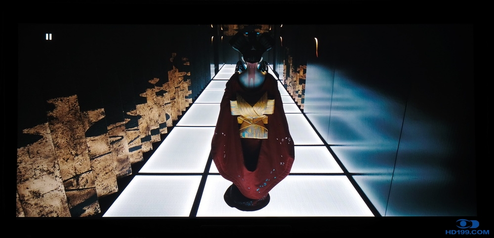 因为本机支持DCI-P3色域,所以针对同一画面分别拍摄了2组照片,方便对比下709和P3色域的差别,不过因为相机设置参数、拍摄环境、幕布增益、拍摄技巧等因素,与实际观看效果依然会有偏差,大家将就看下即可。