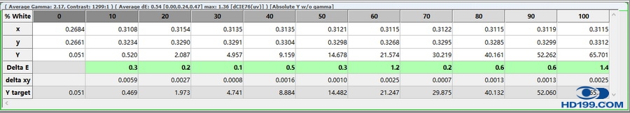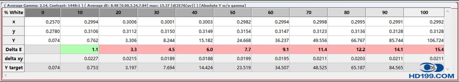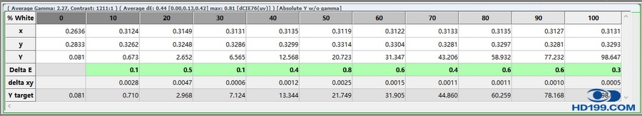 灰阶调整后,皆可达标,Delta E值全部控制在1.0以内!