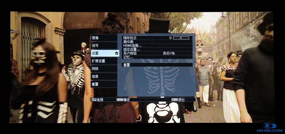 注意右上角,除了标注型号以外,还特意标明了此机的实际分辨率为1080P,很明显,这属于一台4K增强型投影。
