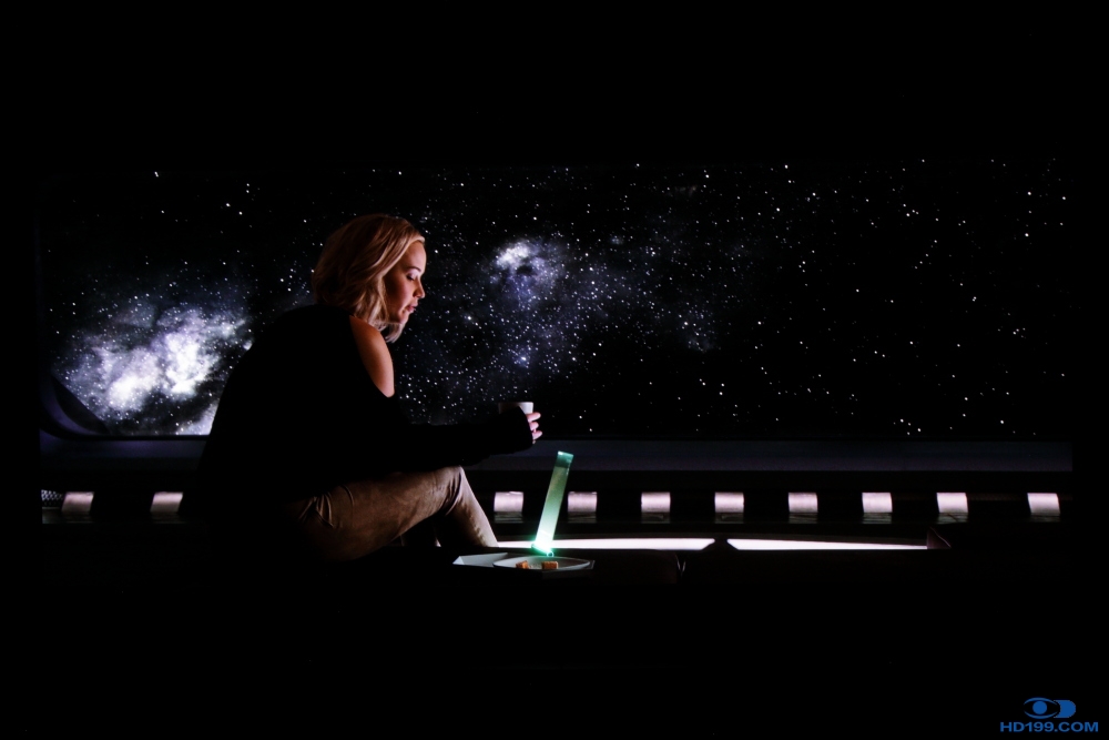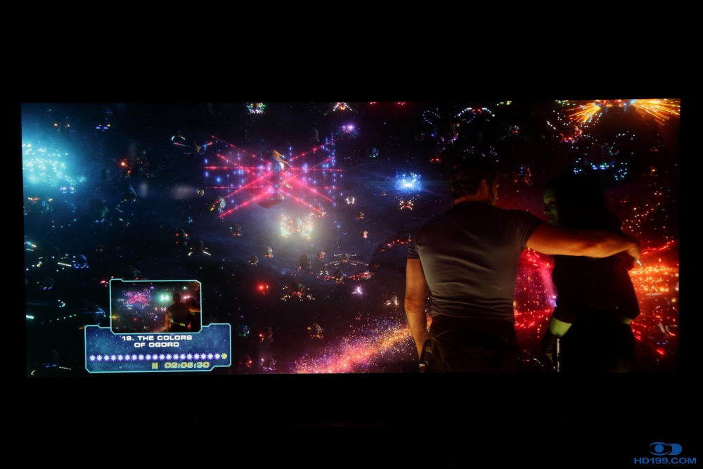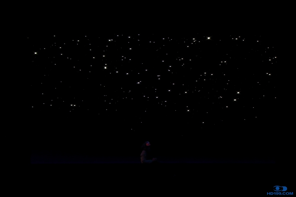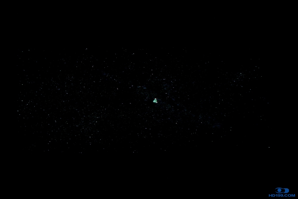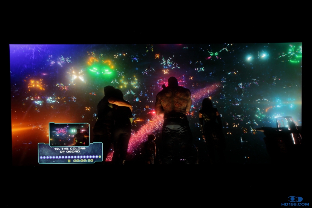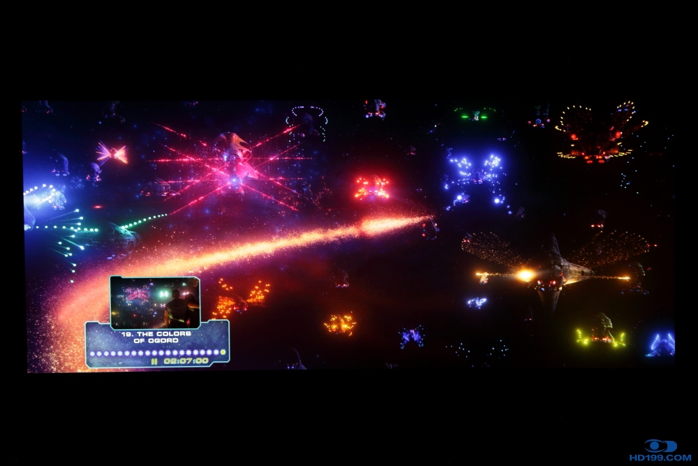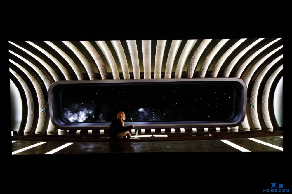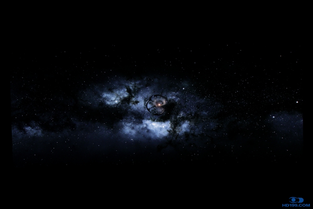 大家基本都会用星际穿越的这一帧星空和飞船画面来衡量投影的实际同屏对比度,因为这一帧的黑色背景中比较亮的星星和飞船很考验投影的硬实力。如果大家也想用这一帧画面来测试,注意请用SDR蓝光版,这一帧画面在HDR 4K版里星空背景被拉亮了,已经不是纯黑了。