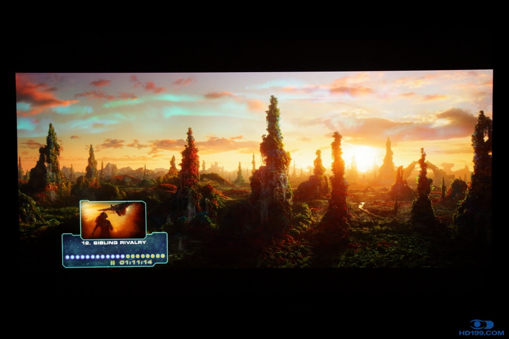 接下来是我自己的屏摄图。还是那句话,对于屏摄,请不要太当真。而且网上绝大部分明亮画面的屏摄也没有什么参考价值,电视也好,投影也好,画质的差距在暗场景更明显。OLED电视和便宜的液晶电视对比就是这样,这也是为什么绝大部分低端电视都会反复播放那些明亮的演示视频用来掩盖缺点。
