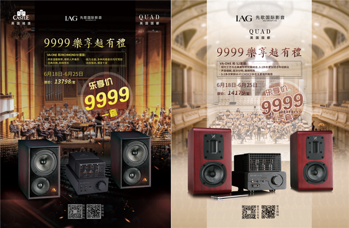 IAG先歌国际影音有限公司于6月18日-6月25日举办了“9999 樂享越有禮”活动,活动期间用户在以下任一家店铺购买指定HI-FI组合产品都仅需9999元。