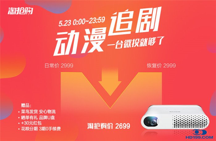 明基家用投影机智能鹰眼微投i300T 登陆天猫淘抢购,5月23日上天猫购机直降300元,领券再减!